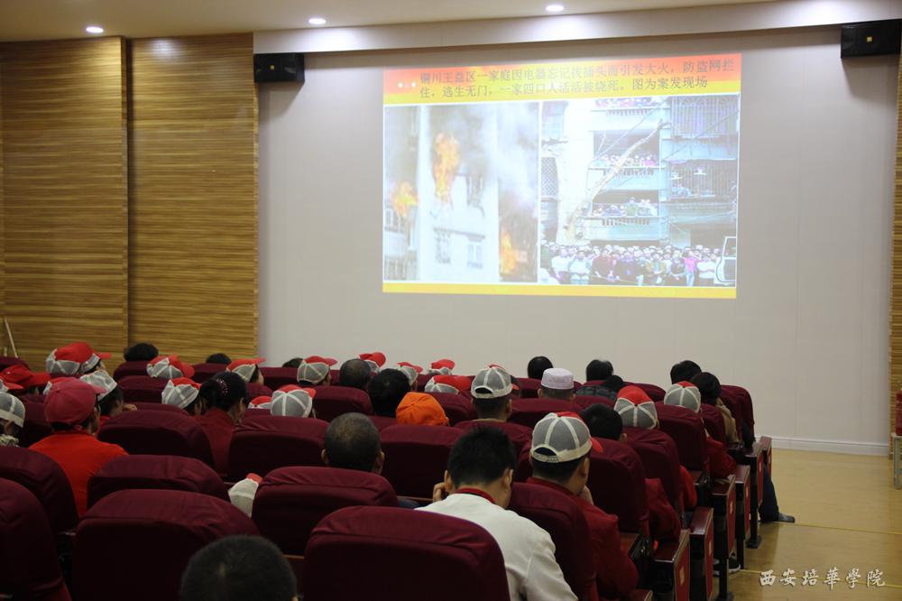 为认真贯彻落实教育部文件精神,增强师生(员工)的防护意识,提高应对火灾、地震等突发事件的应急能力,我校后勤服务保障中心于10月13日下午,在格物楼J101教室举办了2017年第五期消防知识与技能专题培训。培训邀请西安市消安消防科教中心教官来校,以“消除火灾隐患,警钟长鸣”为主题,对各院(部)、中心,后勤餐饮等218名义务消防员进行消防知识培训,内容涉及初起火灾的扑救和消火栓的使用等。