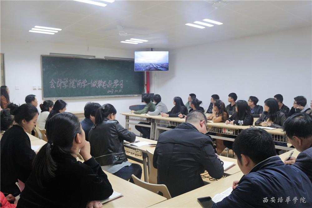 10月11日,为进一步加强基层党组织和党员队伍的建设,深入推进“两学一做”学习教育,我校党委书记胡俊生在博远楼2218教室为会计学院党总支就“两学一做”常态化学习教育讲了一堂专题党课,并观看《不忘初心,继续前行之第四集---《凝心铸魂》。参加本次学习活动的有会计学院党总支书记王文勇、副书记南兵、党总支委员以及教工支部书记、学生支部书记、学生党员代表30余人。