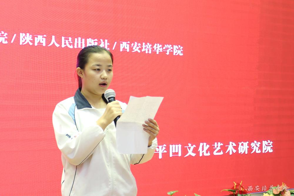 活动中,陕西人民出版社、西安志宽食品有限公司向我校图书馆赠书,我校三名学生分别上台朗诵了贾平凹作品《秦腔》、陈忠实作品《白鹿原》、路遥作品《平凡的世界》摘录出的精彩片段。