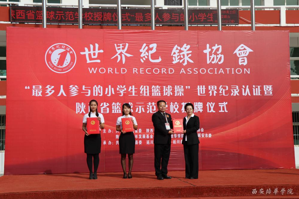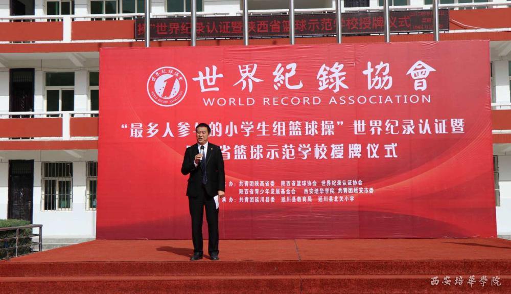 9月22日上午,延川县北关小学“千人篮球操”世界纪录认证暨陕西省篮球示范学校授牌仪式在北关小学举行,这是在我校结对帮扶延川县工作中重点支援北关小学的一项重要举措,学校还为北关小学引进了陕西省青少年发展基金会捐赠项目和环保科技公司饮水设备,切实为北关小学提供支援帮助,解决困难问题。