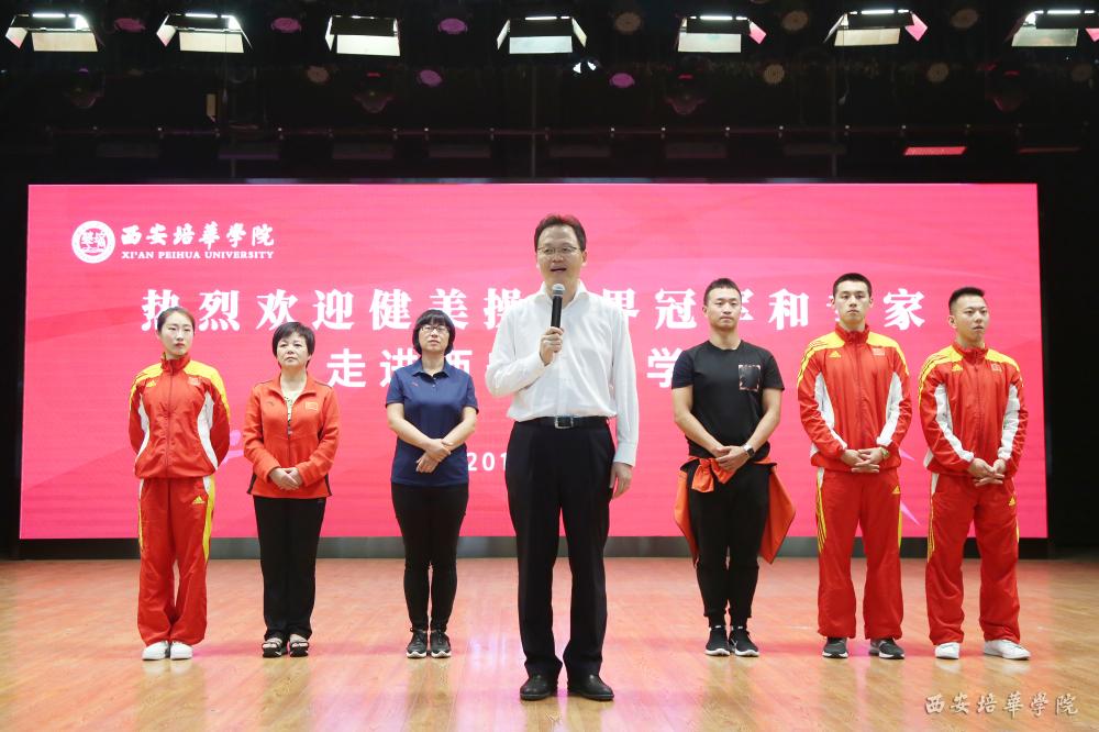 西安培华学院理事长姜波、副校长兼党委副书记徐国富等热情接待了来宾一行,并陪同来到了此次活动的举办地西安培华学院大学生活动中心。姜波理事长致欢迎辞,他讲道:“在培华,体育活动是非常丰富多彩的,‘全民健身运动’的理念也随着这十多年来的体育教育‘俱乐部’制的改革和创新,在培华进行的如火如荼,体育届的明星们以及陕西运动界很多世界冠军奥运冠军等也多次莅临培华交流访问。我本人也是体育产业、体育竞技的一名爱好者和参与者,今天非常高兴能够将青年健美操的代表们迎入培华,机会非常难得,希望嘉宾们的教学能够为我们的同学带来热情与欢乐。”