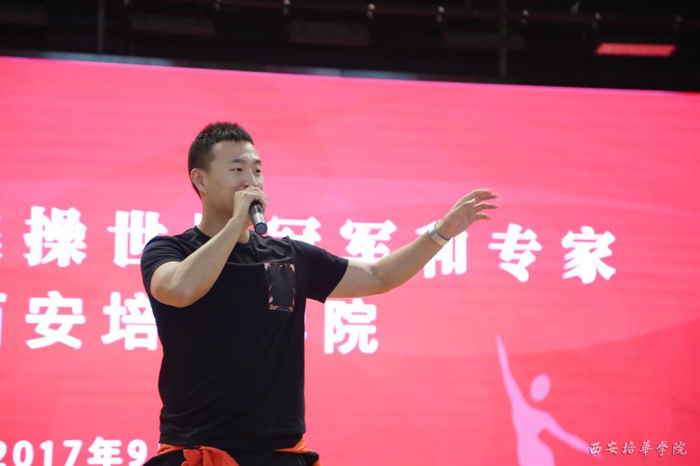 9月17日下午,国家体操运动管理中心发展部健美操项目官员谢会军,中国健美操协会技术科研委员会副主任、西安体育学院教授匡小红携广场舞小王子、央视春晚健身节目编导王广成,及国际健将、六人世界冠军张鹏,五人操、团体世界冠军马超,团体世界冠军赵明、付垚等一行七人来访培华,为千余名学生带来了一场精彩的健美操示范课。