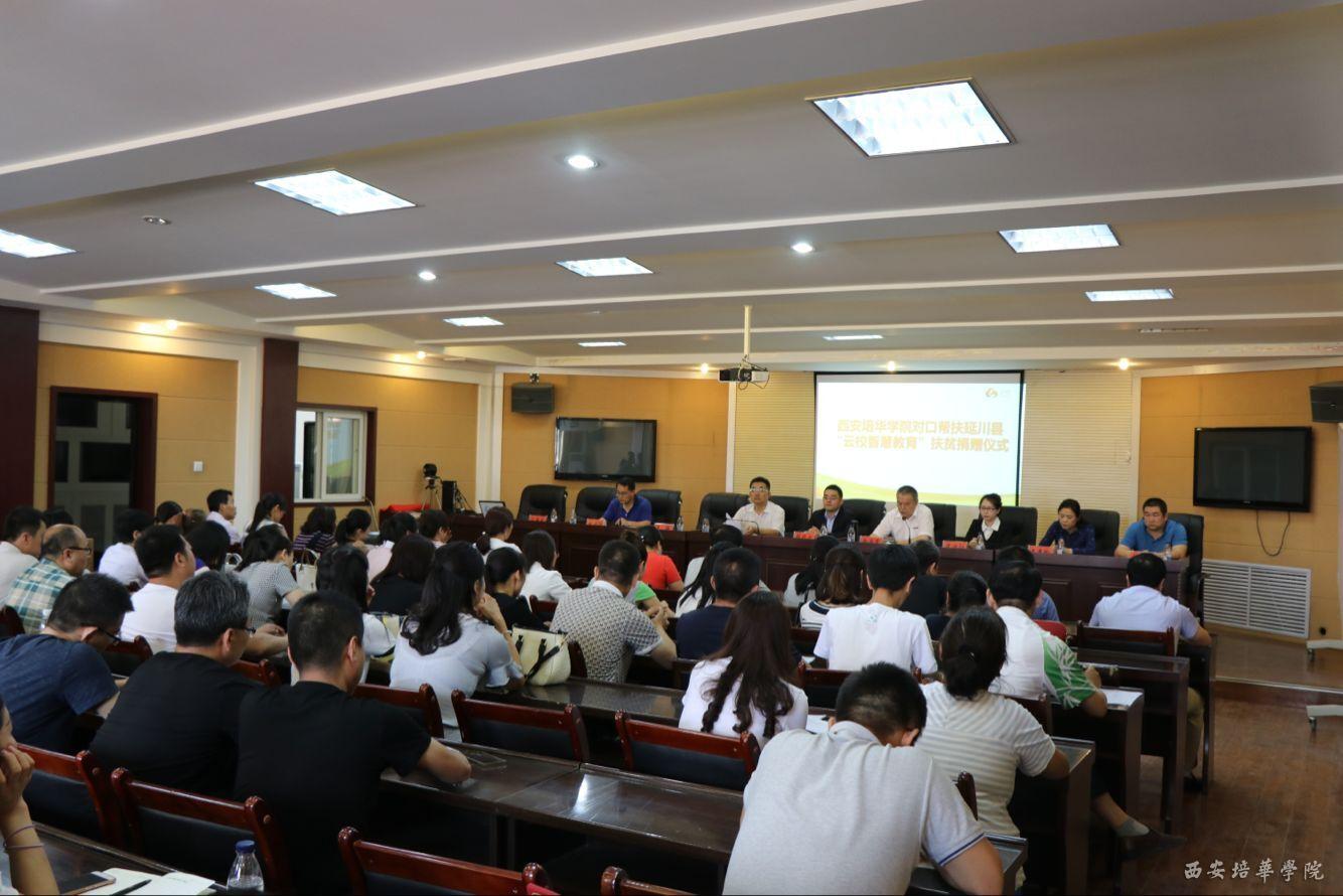 西安培华学院对口帮扶延川县“云校智慧教育”扶贫捐赠仪式现场