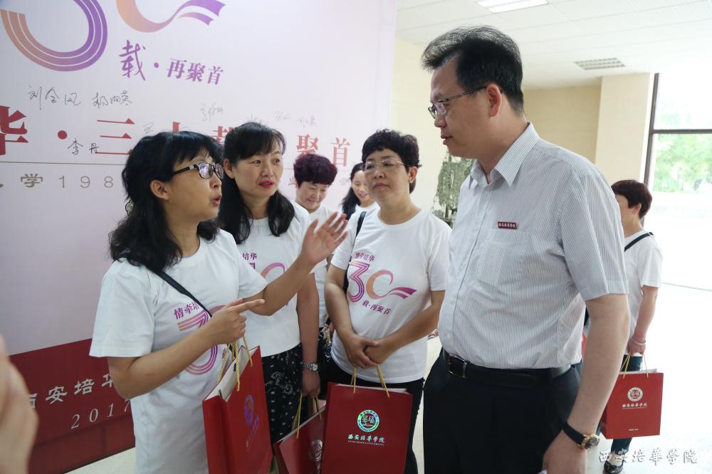 副校长、党委副书记徐国富在讲话中提到:“神禾塬上,培华屹立。”校友与培华共度三十年漫长岁月,他说,校友们在工作中努力就是对培华的最大回报。