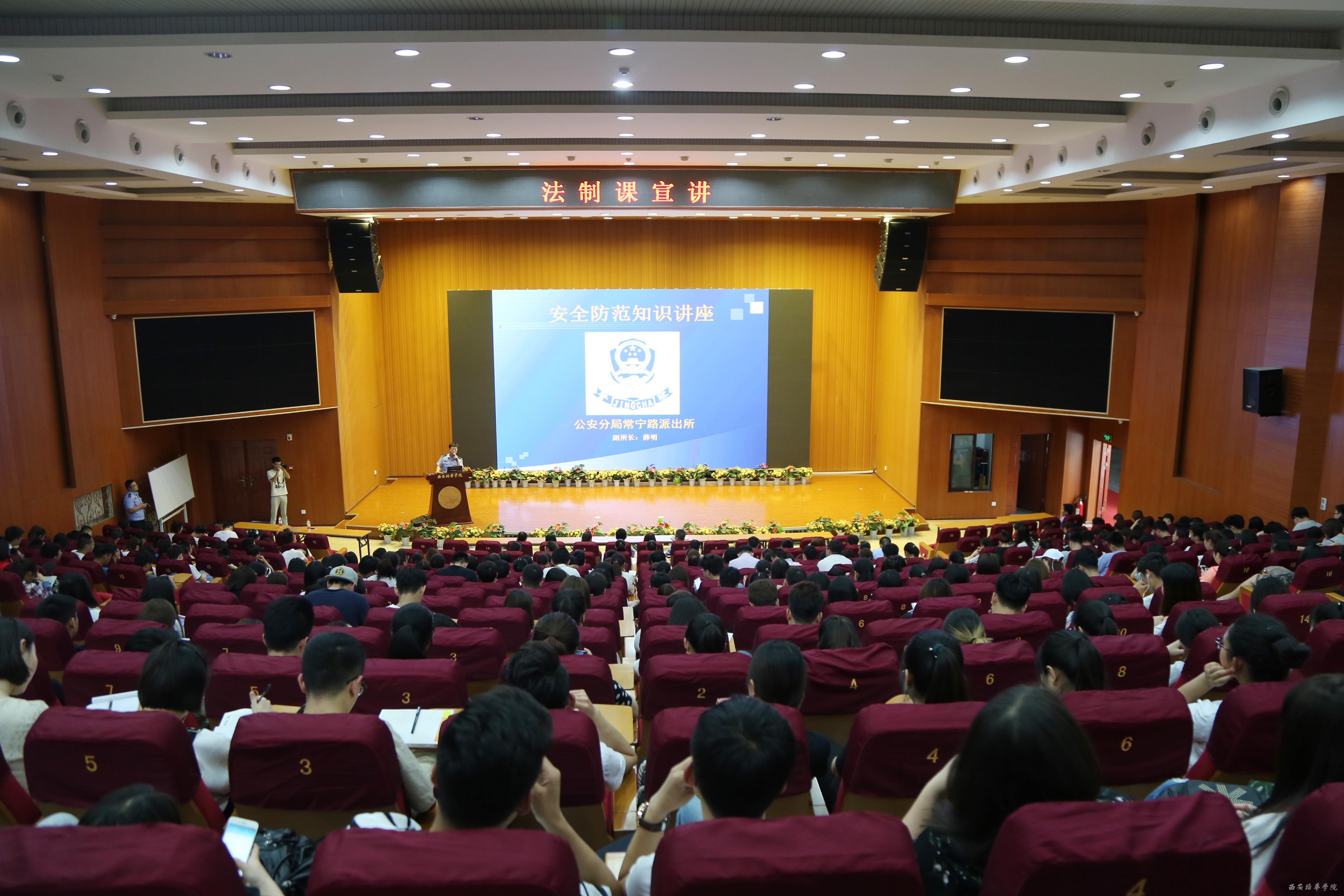 应邀主讲本次讲座的是长安分局常宁路派出所薛明所长,她结合生活中的具体事例,深入浅出地给师生们讲解了人身安全、防骗、防盗、网络贷款等有关法律法规知识。所选案例典型生动、接近学生、接近生活;随后又从校园安全、交通安全等方面对学生提出了具体要求。