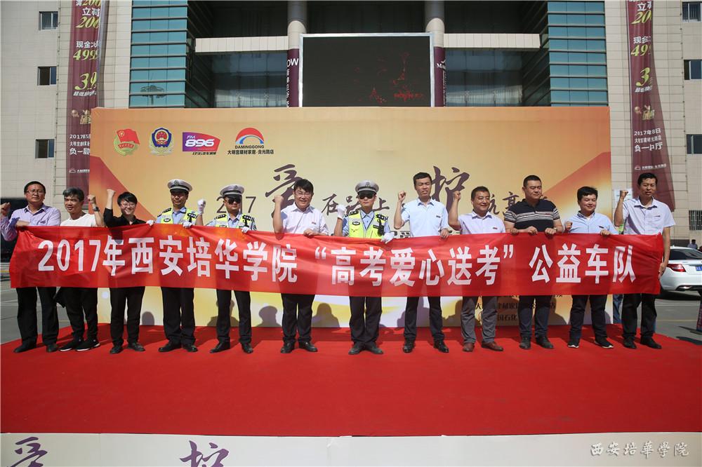 5月27日上午,共青团西安市委、西安市交警支队、896汽车调频,西安培华学院等企事业单位共同举办的2017“爱在路上·护航高考”启动仪式在大明宫建材家居城广场圆满举行。