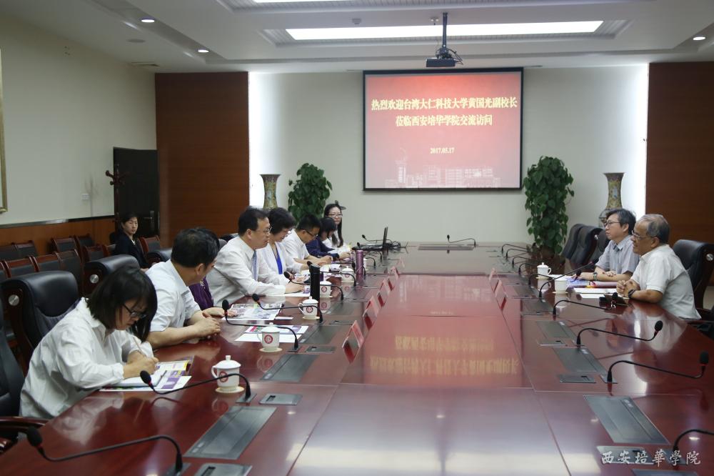 我校理事长姜波向来宾介绍了培华学院的悠久历史和发展现状,他表示台湾大仁科技大学在传统文化的传承和医药健康等方面都有先进的经验,培华愿意与台湾大仁科技大学携手,培养医药学精英人才。台湾大仁科技大学副校长黄国光简单介绍了学校情况,并对双方合作表达了期许。