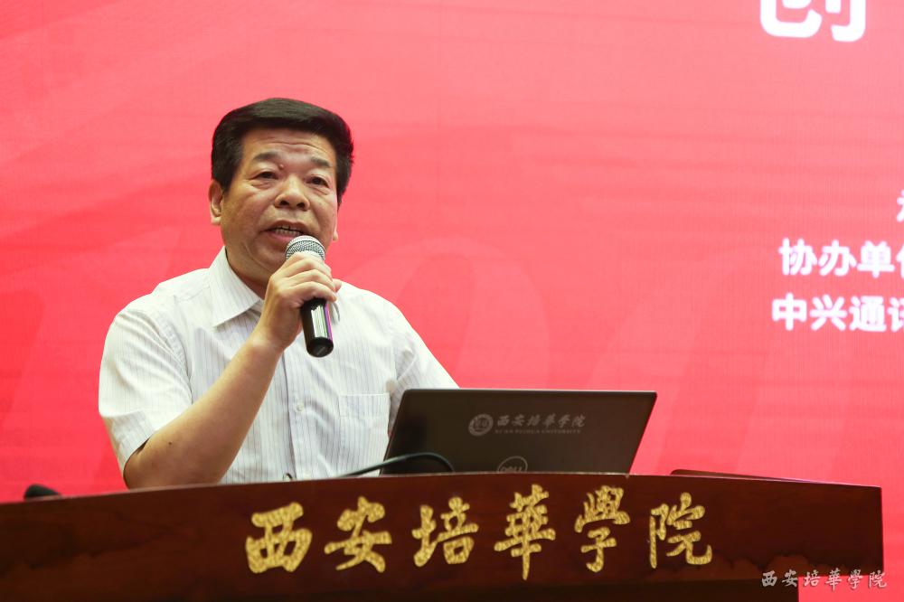 陕西省政协常委、省青联副主席、我校理事长姜波出席论坛并讲话,他表示,中华职教社走过100个年头,中国职业教育大放异彩,民办高校职业教育使命光荣、任务艰巨。在当今这个提倡创新创业、产教融合、校企合作的时代背景下,培华与深圳国泰安教育技术股份有限公司、中兴通讯股份有限公司等众多知名企业展开了合作,传承黄炎培先生职业教育思想,并赋予其新的活力。希望广大师生能通过论坛汲取营养,获得启发,碰撞出灵感的火花。