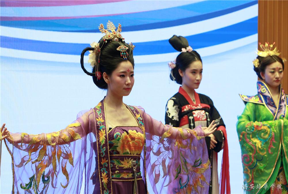 参与本次活动的专家教授为大家带来了一系列精彩讲座,韩国韩南大学金貞鎬教授讲述《通过兴德王的服饰禁制了解新罗时期的服饰》,西安培华学院李媛教授讲述《隋唐盛世的华丽风尚》,韩国韩南大学李美?教授讲述《在隍城洞,龙江洞古墓出土陶俑中出现的统一新罗服饰》,西安培华学院牛菲教授讲述《唐代服饰元素在现代设计中的应用》。