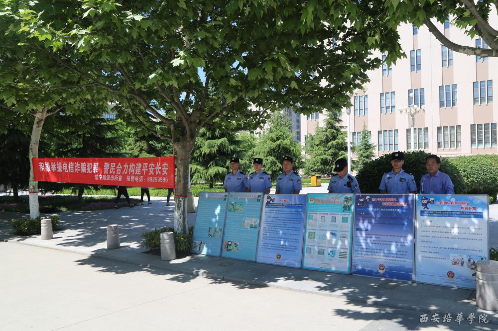 随着高校毕业季的到来,针对校园师生的电信网络诈骗警情频发,为有效遏制电信网络诈骗警情的高发态势,5月17日上午,常宁路派出所闫队长一行人到西安培华学院开展“电信网络诈骗安全教育”宣传。