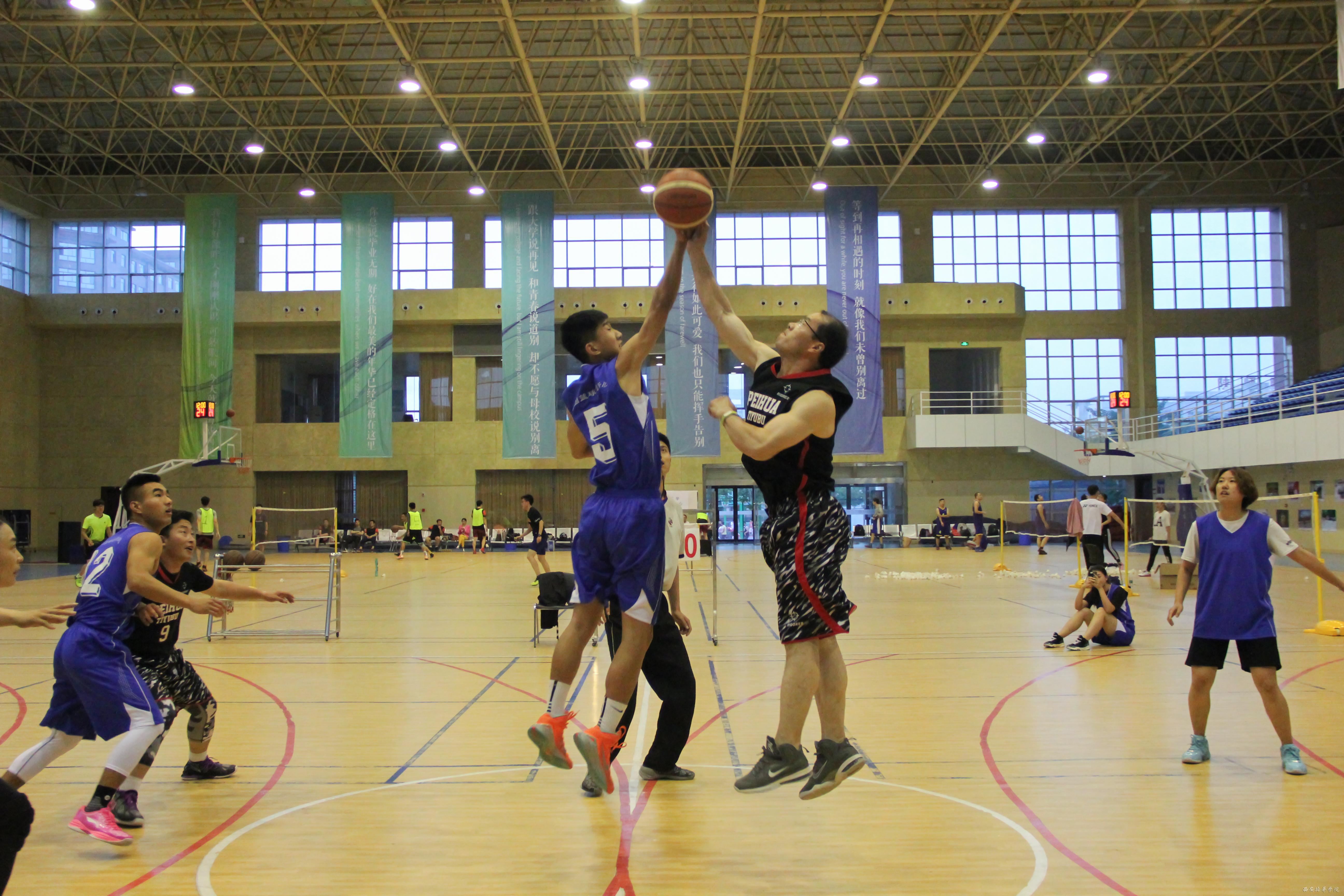 比赛一开始,学生队员们就全力以赴,上篮、传球、防守,展现了运动员们的风采,体育中心队的老师们更是当仁不让,积极拼搏,副校长兼党委副书记、工会主席徐国富老师在投篮中花样翻新,整场共投进了5个10分球,为体育中心队赢得了50分。但是在后半场中,创新队改变策略,利用篮球新规则,比分扳回,最终以86:71的好成绩赢得比赛。