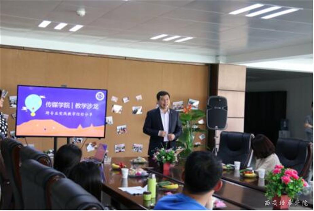 4月27日下午,由教师发展中心主办、传媒学院承办的以“跨专业实践教学经验分享”为主题的2017年第二期教学沙龙活动在我校教工之家顺利开展。本次教学沙龙活动由传媒学院教学主管张荣花老师主持、戏剧影视文学专业的宿东明老师主讲。教师发展中心副主任李娇萍、传媒学院副院长江俊瑞,以及来自传媒学院、艺术设计学院、人文学院、国际教育学院、会计学院、体育中心、中兴电信学院等各二级学院的近50名教师参加了此次沙龙活动。