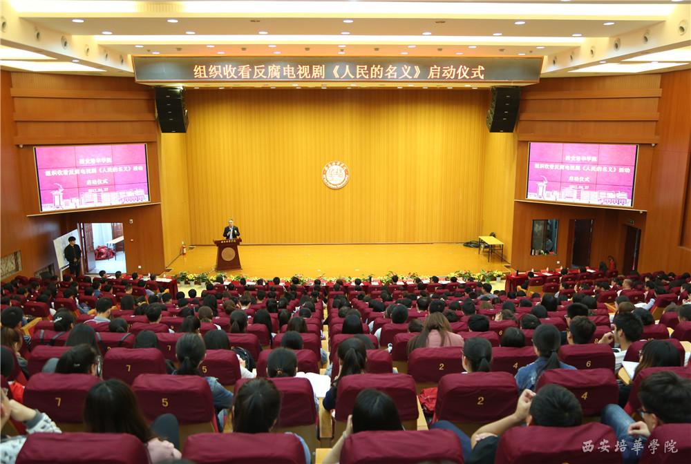 为深入开展反腐倡廉教育,增强党员领导干部和全体党员的政治免疫力,推进“两学一做”学习教育常态化制度化,经校党委研究,决定在全校范围开展收看反腐电视剧《人民的名义》活动,并于4月26日下午在图书馆报告厅召开启动仪式,大会由西安培华学院副校长、党委副书记、工会主席徐国富教授主持。
