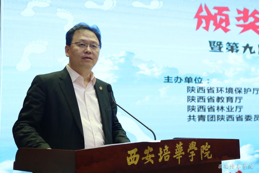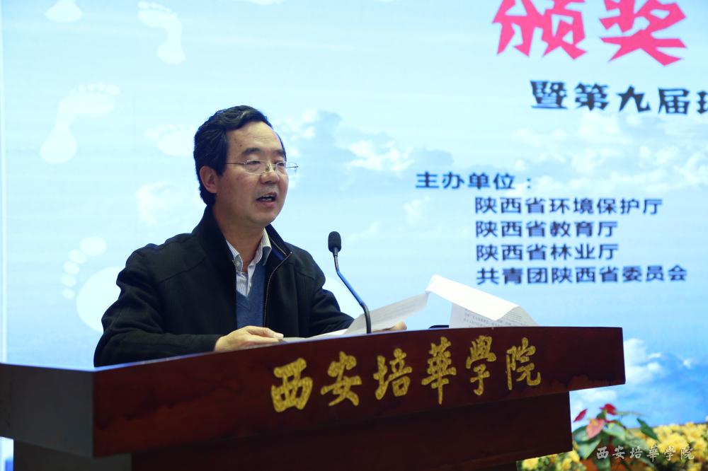 姜波理事长首先致欢迎辞,他讲到,环保创意大赛自举办以来,作品形式更加多样,质量逐渐提升,以优秀的作品为载体,将环保知识、环保理念广泛传播,增加了大学们对环境保护的关注。他表示,很高兴能够第四次承办大赛颁奖典礼,希望这样的品牌活动越办越好,使大学生们参与到生态陕西、和谐陕西的建设当中,共同将陕西省打造成为科教文化强省。