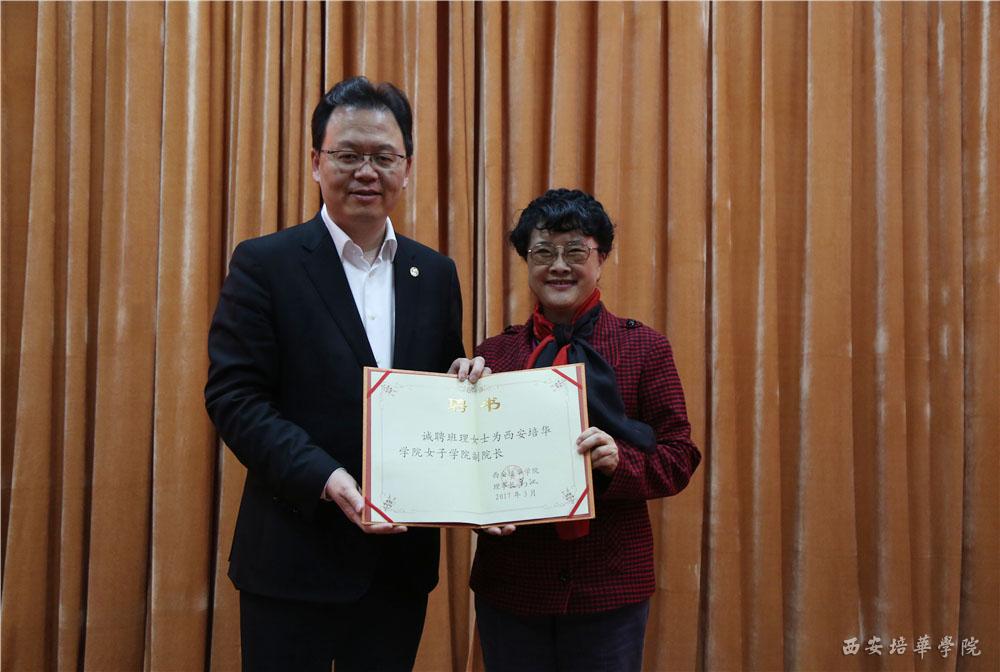 姜波理事长为班理颁发了西安培华学院女子学院副院长聘书