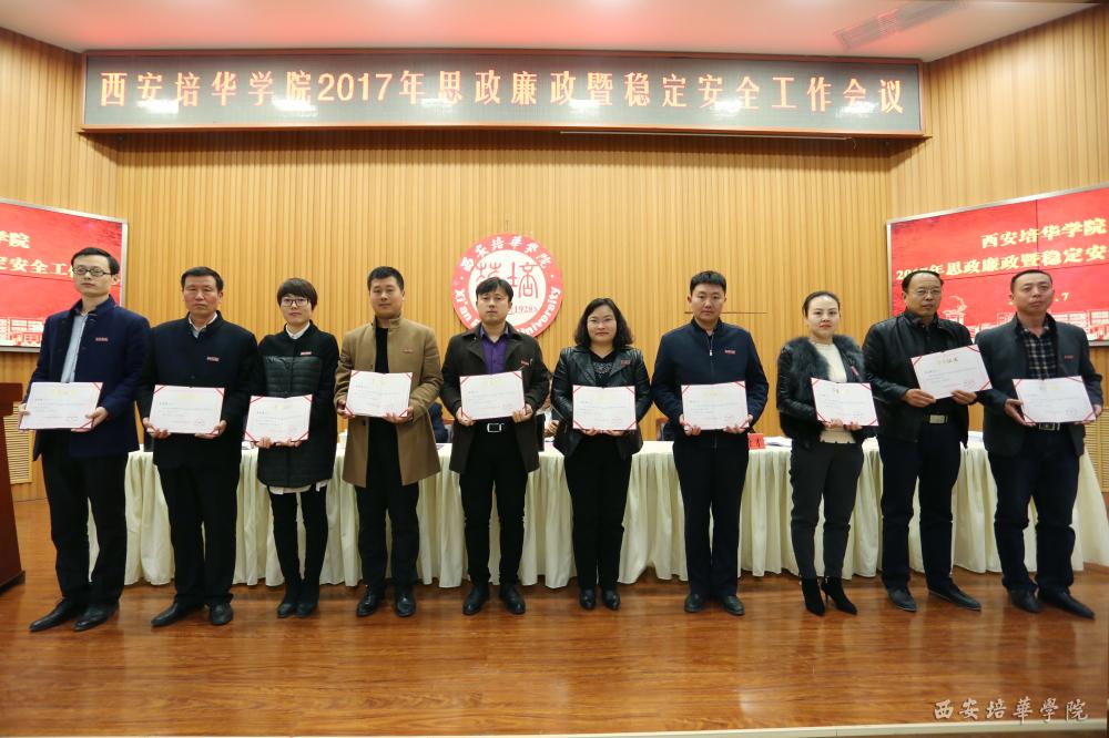 会上,王拴才校长宣读了《关于表彰2016年度省级“平安校园”创建工作先进集体和先进个人的通报》,对校长办公室等5个“平安校园”创建先进单位和赵彦博等27名先进个人予以通报表彰。同时,王校长与会计学院、传媒学院、教务管理中心、后勤服务与保障中心等二级部门负责人签订年度稳定安全责任书。