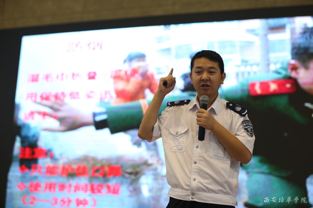 9月13日上午,我校“2016级新生应急火灾疏散演练”工作正式展开,政安消防2014金牌教官、中国家庭消防2015传播大使杨军强主任为我校2016级全体师生带来了一场别开生面的消防知识培训。