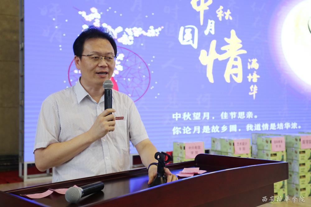 姜波理事长祝福全校师生幸福安康,阖家团圆。他讲到,中秋佳节,学校为每位老师和学生发放月饼,是希望在这个特殊的节日里,为大家送上一份温暖和快乐,传承弘扬以人为本、以德为先的培华精神。衷心祝愿每一位培华人都幸福快乐。
