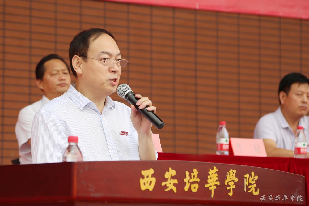 姜波理事长欢迎2016级莘莘学子加入培华大家庭,并作军训动员讲话。他讲到,作为一所与新中国同呼吸共命运的学校,西安培华学院经历并见证了祖国的艰辛发展历程。在抗战中,新中国建设时期,改革开放后,培华积极开展女性教育,培养金融人才,1984年著名教育家姜维之先生创建“培华女子大学”,建校88年来学校为各行各业培养了大量的应用技能型人才,赢得了良好的社会口碑。