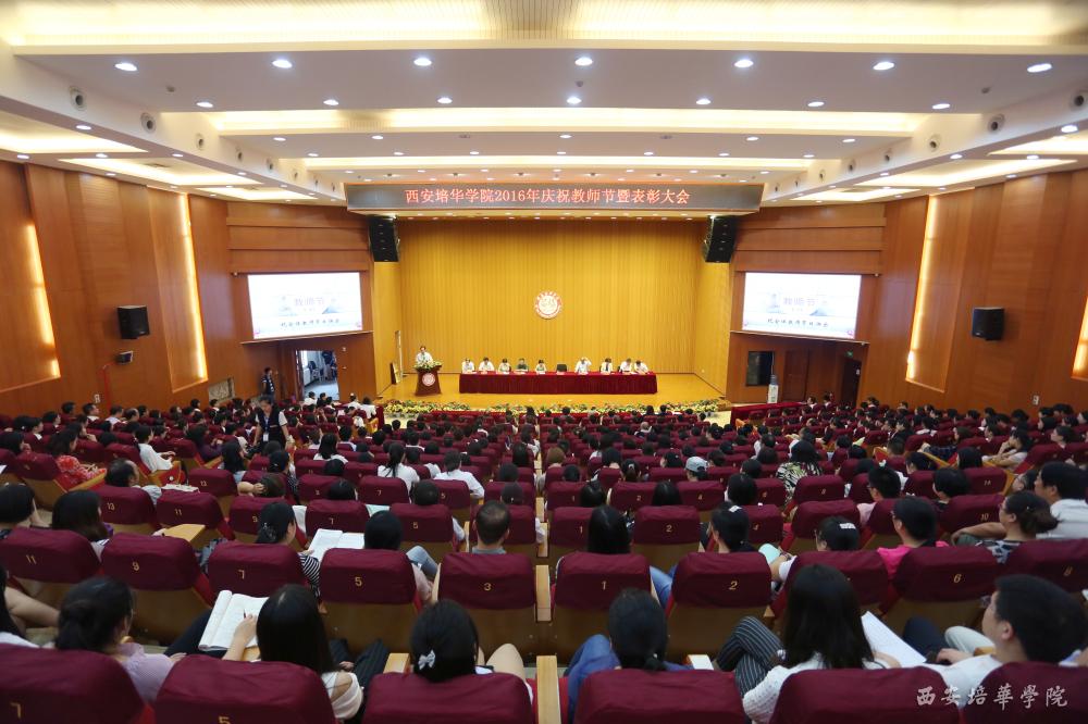 在第32个教师节即将来临之际,为进一步激励我校广大教师教书育人、为人师表,树立职业自豪感和责任感,全面提升人才培养质量和师德水平,9月9日下午,学校在维之图书馆报告厅召开“西安培华学院庆祝第32个教师节暨教师表彰大会”,对我校在过去一年里取得突出成绩的教师进行表彰。全体校级领导,各院(部)、中心负责人,教师代表,辅导员代表,学生代表500余人参加会议。