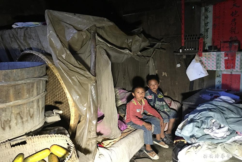 到达山区的第一天,因为教室短缺,一二年级合班上课,课上弟弟朱艺阳吸引力我的注意力,放学后我和另外一名支教老师搭伴护送两个孩子回家,因为考虑到纪录片的拍摄,想着顺便做个家访。通往他们家的路上的时候有一条小溪流,因为没有桥和路可以过去,所以必须要趟水踩着石头过去,家里平时除了兄弟俩人以外,只有一个患有白内障的70多岁的奶奶相依为命。妈妈很早的时候就离家出走了,父亲在外打工。