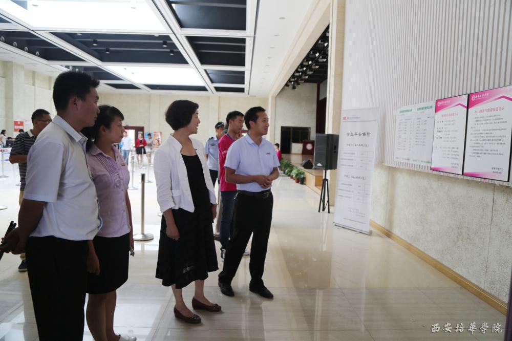 接着,刘副校长一行来到位于汇知楼一楼大厅的流程表打印处、财务缴费处、绿色通道的报名现场,察看家长休息大厅后,关心问家长有还有啥困难及时提。随后去传媒学院、女子学院,与相关负责人亲切交谈,听取工作介绍;表扬了女子学院教学楼走廊的文化墙展板,参观全媒体工作室以及小锐影视文化传播工作室。鼓励年轻人不断创新,多出好作品为学校争光。
