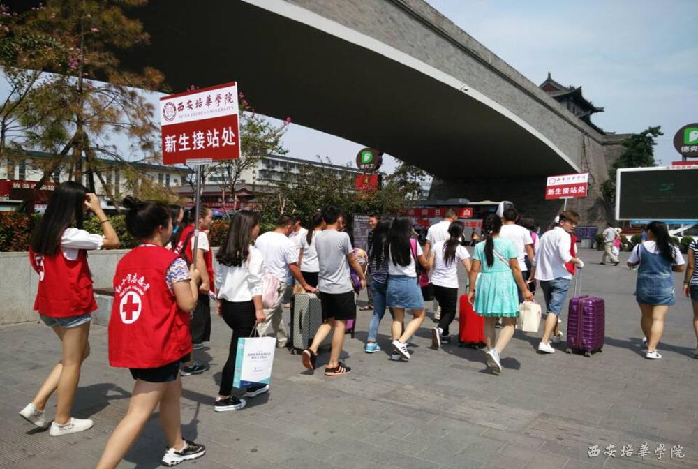 志愿者在火车站迎接新生及家长