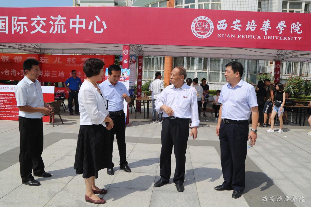下午2时许,王校长一行来到格物楼西广场,询问学生报名情况,在国际交流中心展位前,王校长与该中心负责人亲切交谈,在听取有关情况介绍后给予肯定和鼓励。