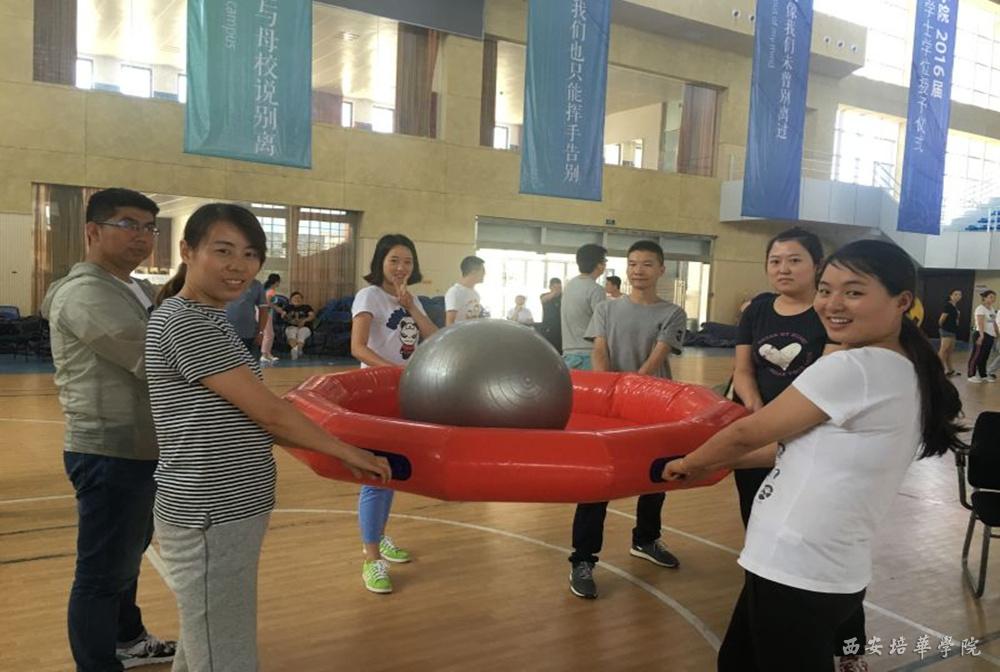 “颠球投篮”——每支参赛队伍派出12名成员分两组持道具颠充气球前行接力,途中需回答问题,每名参赛队员需在途中投球入篮方可继续进行比赛,用时最短的队伍获胜。