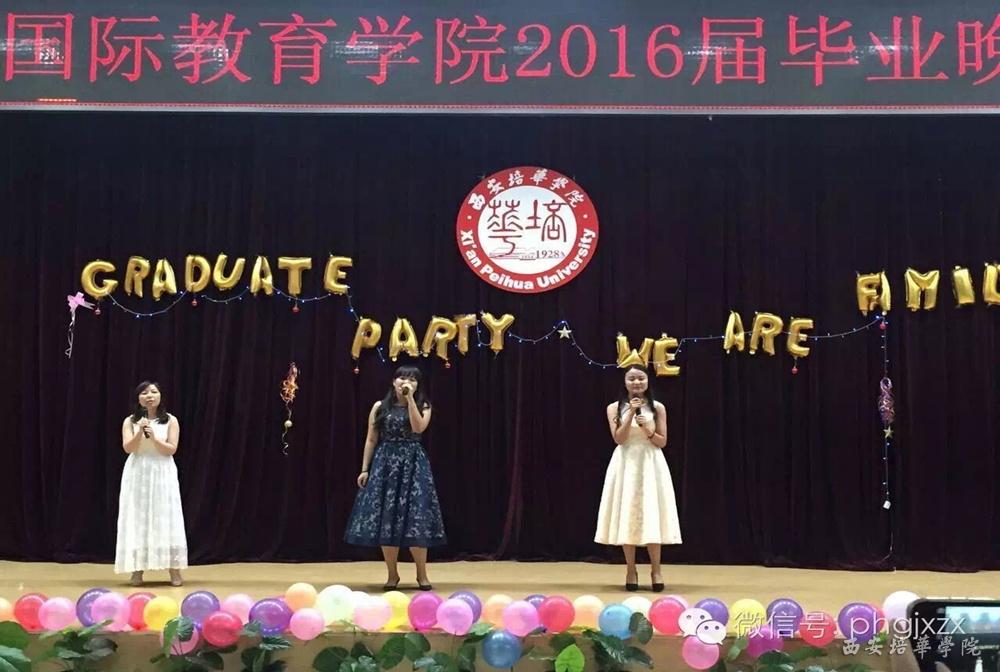 国际教育学院:用欢歌笑语化开着浓重的别离情愫。6月26日晚,国际教育学院在汇知楼阳光厅举办2016届毕业晚会。外籍教师藤田先生,日语系学科带头人刘建强教授,学业导师们都一一表演了节目,送上了对毕业生的祝福。伤感的离别情愫在欢歌笑语中似乎减淡了许多,国际教育学院副院长王鹏在毕业寄语中表示国教院永远是毕业生的家,让学子们内心充满感动。