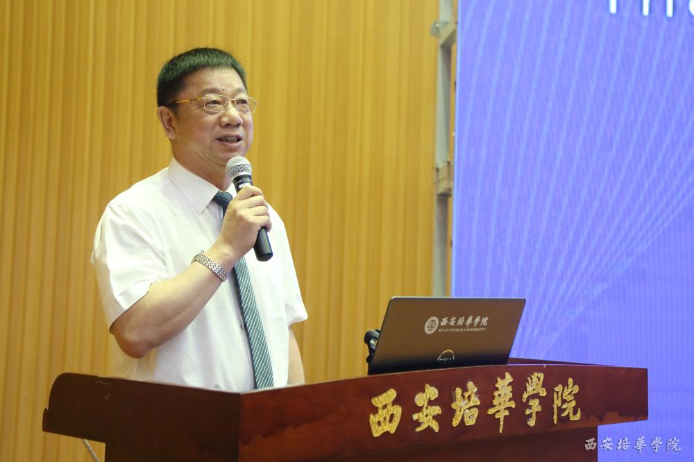 应用型课程建设联盟发起人,齐齐哈尔工程学院校长曹勇安教授主持开班仪式。他介绍了应用型课程联盟的成立背景,他表示,2015年全年,联盟一共举办了3次应用型课程大课堂,有76名教师分别从中、高、本、研来谈课程,此次在培华学院举办第一期应用型课程建设研修班是一个新的历史里程碑,一个新的开端。