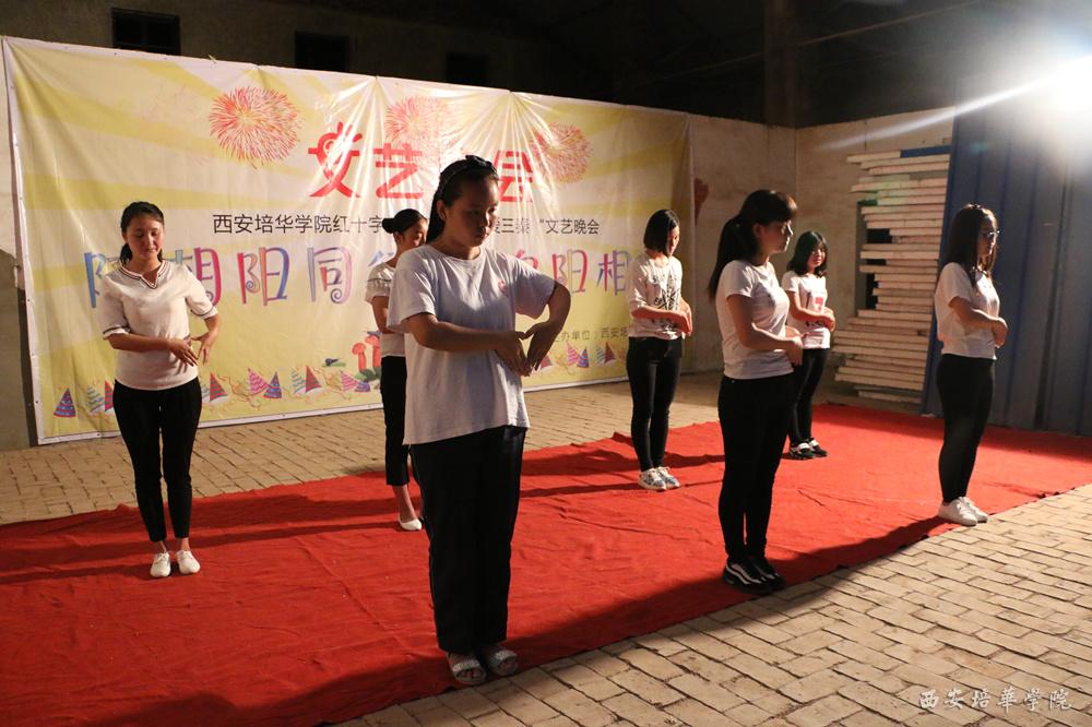 6月7日,西安培华学院红十字会第二期“博爱三秦”项目之“陪朝阳同行,与夕阳长伴”文艺晚会在皇甫村举行。晚会由我校红十字会全部统筹,志愿者担负晚会的策划案,搭建舞台,出展板海报,节目的编排,现场的安保、音控、场务等工作。