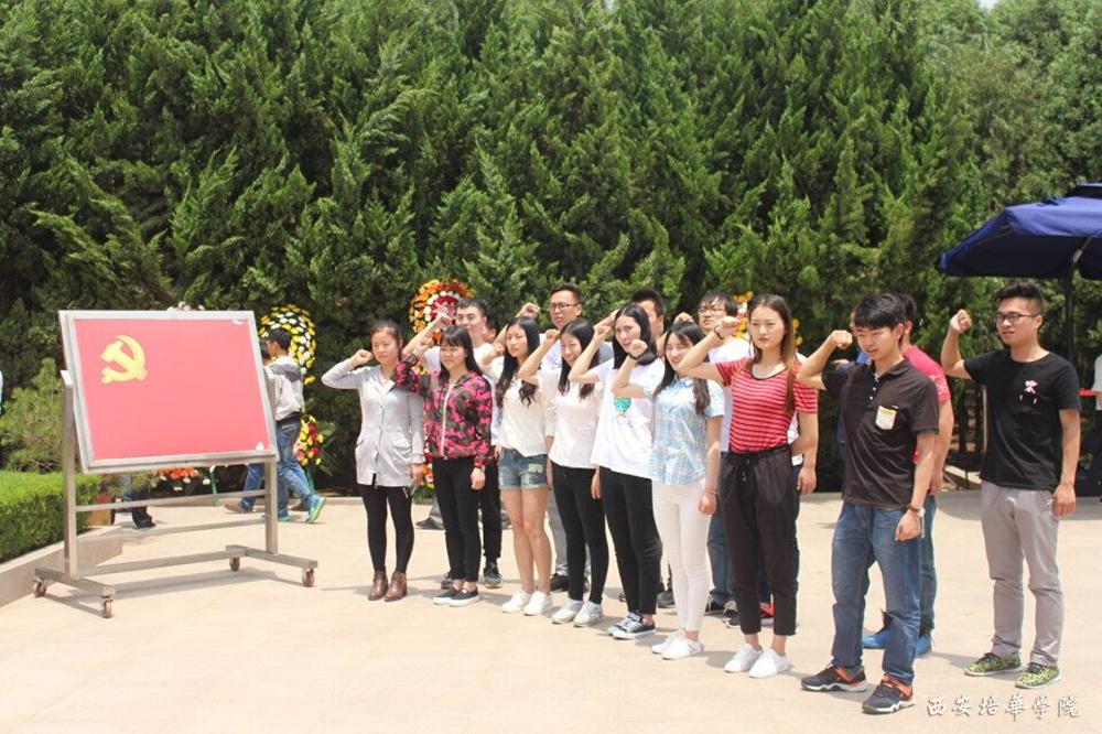 在习仲勋陵园,同学们庄重的举起右拳重温了入党誓词