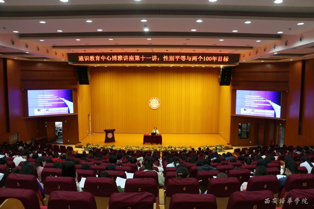 5月25日,我校博雅讲座第十讲在维之图书馆报告厅举行。讲座特邀学校女子学院副院长金沙曼教授以“性别平等与两个一百年目标”为题进行演讲。金沙曼教授是中国妇女研究会理事、中国妇女研究会妇女教育专业委员会理事、中共陕西省委党校妇女/性别研究与培训基地原常务副主任、妇女研究中心原常务副主任,在女性科研和学术研究方面有较为深厚的学术造诣。我校通识教育中心部分教师及400位学子参与了此次活动。