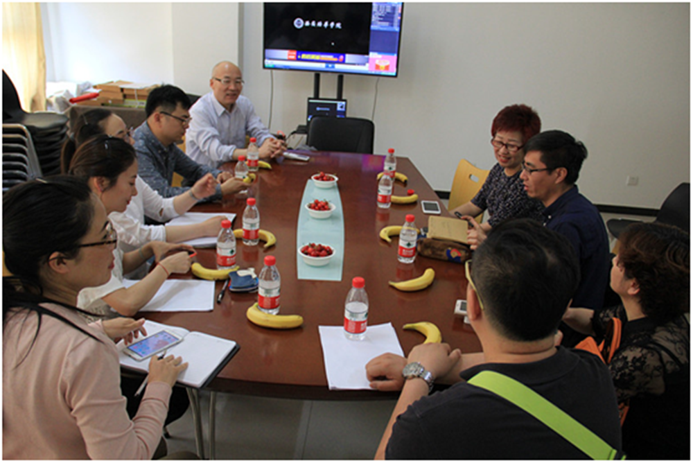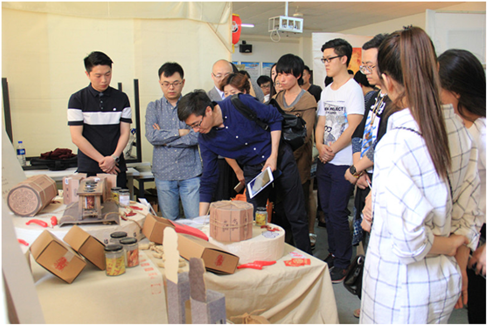 5月18日,永兴坊总经理,文化发展中心沈艾丽总监、永兴坊项目设计师王剑总监、设计师邢斌等一行四人应邀来校参观2016届广告学专业毕业设计展。