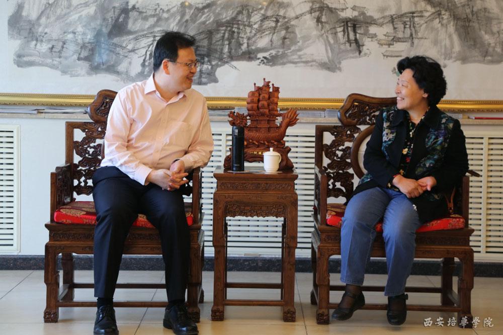 参观过程中,唐保玲理事长听取了姜波理事长关于学校历史沿革、专业建设、发展概况等方面的介绍。随后,双方在明德楼会议室进行座谈,唐保玲理事长对培华八十八面悠久历史和所取得的成绩表示震撼,表示愿意寻求机会与培华进行合作,并称赞培华学院是中国民办教育的一面旗帜。