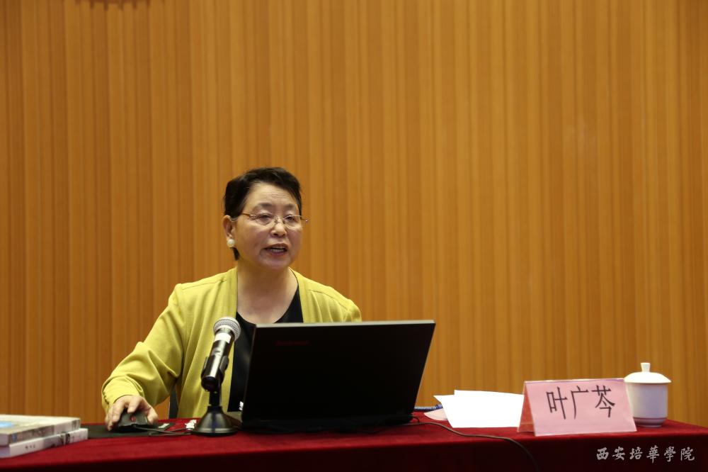 5月12日下午,我校女子学院女性文化大讲堂第40讲在维之图书馆报告厅开讲,女子学院院长、著名作家叶广芩为2015级女子班学生深情讲述“我们的秦岭”,并表达了对培华学院深厚的感情。副校长于国亮、图书馆馆长吴晓燕、团委书记王翠以及女子学院的各位老师参加了活动。女子学院副院长金沙曼主持报告会。
