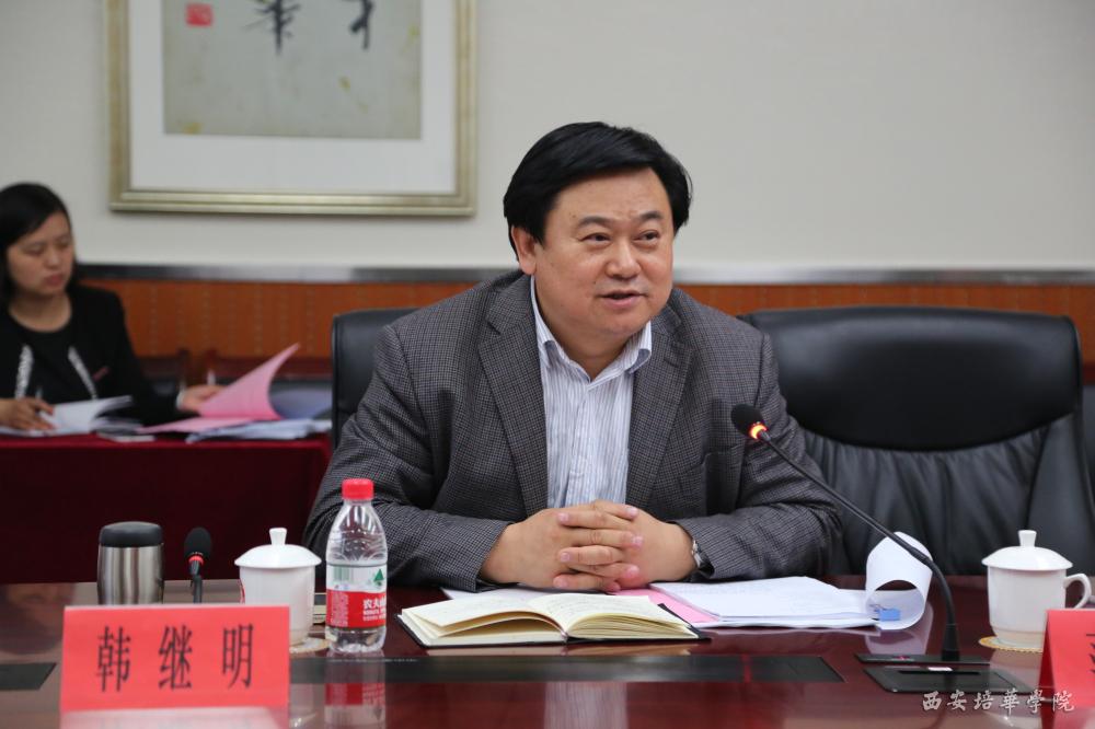 姜波理事长作简单汇报。2004年在教育部、国家卫生部和陕西省教育厅、陕西省卫生厅的大力支持下,我校获批临床医学专科专业,学校一直将医学发展作为学校发展中的重中之重。在教育资源、医学资源都在向大型医院、向公办院校聚集的格局下,从国家步入老龄化社会,从落实分级诊疗、全科医生培养,培华学院有着强烈的责任感和使命感。学校整合多方面的资源,和相关产业将签署全方位战略协议,打造政、产、学、研、用一体化平台。姜波理事长希望专家组为我校临床医学申本工作多提宝贵意见,并感谢各位专家对民办教育和对我们培华学院的关爱和支持。