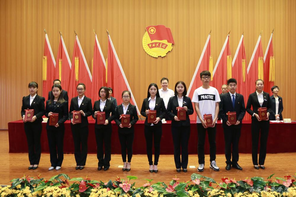 姚文静副书记宣读了《关于表彰2015-2016学年优秀团员 优秀团干部 优秀团员标兵 先进团支部 五四红旗团总支的决定》,决定中表示,对1043名优秀团员,403名优秀团干部,53名优秀团员标兵,25个先进团支部,3个五四红旗团总支进行表彰。随后,参会校领导为荣获以上表彰的学生代表颁发了荣誉证书。