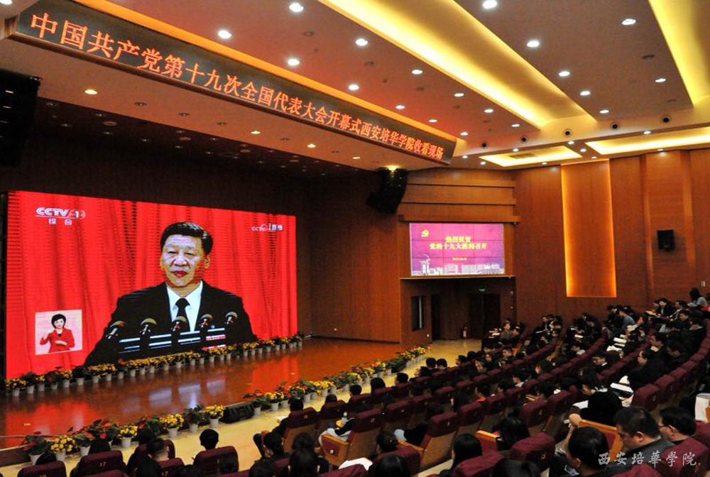10月18日上午,中国共产党第十九次全国代表大会在北京开幕,我校姜波理事长与校级领导班子成员、中层干部及师生代表等500余人,在维之图书馆集中收看开幕式现场直播。伴随着庄严的国歌,开幕式正式开始,习近平总书记代表十八届中央委员会向大会作工作报告。我校师生认真聆听总书记的工作报告,现场掌声雷动,大家认真做好笔记,领悟学习习近平总书记工作报告精神。