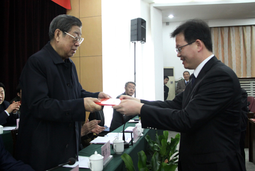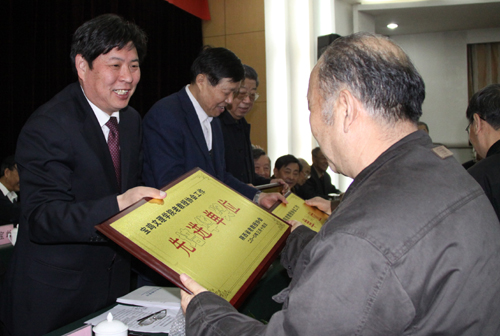 陕西省老教授协会副会长刘续德宣读了《关于表彰了2005—2009年期间老教授协会工作的先进集体、先进个人、突出贡献者和先进单位的决定》和关于本次奖项以“培华奖”来命名的情况说明。省领导和我校理事长姜波博士为获奖的单位和个人颁奖。为了感谢西安培华学院姜波理事长为老教授协会所作的突出贡献,张勃兴书记代表协会为其颁发了“老教授协会特殊贡献奖”。