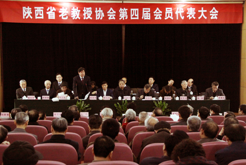 2010年3月14日陕西省老教授协会第四届会员代表大会在陕西师范大学大学生活动中心隆重召开。中共陕西省委原书记张勃兴,陕西省人大原副主任、陕西省老科协会长李天文,陕西省委组织部副部长兼老干部工作局局长詹德旺,中国老教授协会常务副会长、清华大学原常务副校长张慕葏,陕西省委教育工委副书记、省教育厅厅长杨希文等领导同志出席会议并作重要讲话。中国工程院院士姚穆、李佩成,西北大学名誉校长、省老教授协会原会长张岂之教授,陕西省教育总督学曹普选,陕西省政协常委、教育厅原厅长胡致本,陕西省人力资源与劳动保障厅副厅长雷保岐,陕西省民政厅副厅长山振兴,陕西省教育学会副会长吕九如教授,陕西师范大学原常务副校长、陕西省老教授协会会长李钟善教授、常务副会长赵长伶教授、副会长刘续德、朱均、薛中天、郅宝森、张力、王性炎等教授,秘书长高庆达研究员,我校理事长姜波博士和陕西省老教授协会理事、会员代表近200人参加了大会。