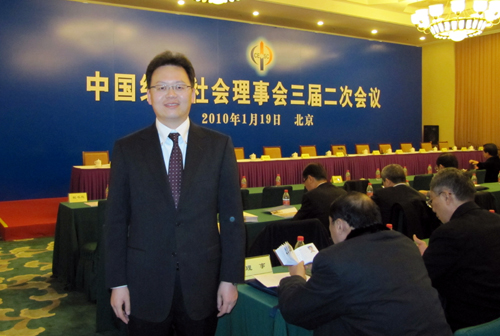 2010年1月19日上午,中国经济社会理事会三届二次会议在全国政协礼堂举行,会议听取了中共中央政治局委员、全国政协副主席、中国经济社会理事会主席王刚的重要讲话,审议并通过中国经济社会理事会2009年度工作报告。会议还审议并通过新增补常务理事、理事名单。姜波理事长出席会议并受到王刚同志的亲切接见。