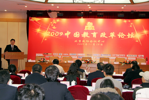 2009中国教育改革论坛于11月28日在北京政协会议中心隆重召开,本届论坛以“共庆和谐盛世、引领教育未来”为主题,围绕着即将颁布的“国家中长期教育改革和发展规划纲要”以及中国教育行业面临的新机遇新挑战进行了深层次的交流与探讨。