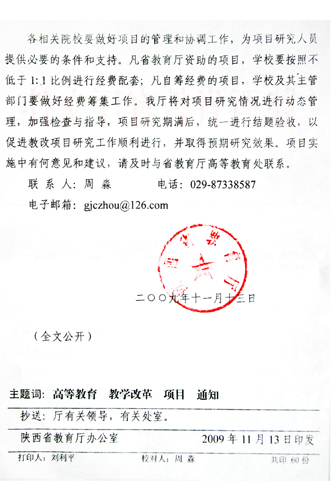 由姜波理事长主持,肖建军、徐波峰、袁放建、宋天妹四位教师参与的《陕西民办高等教育可持续发展研究》项目,近日获批省级教学改革重点项目,这是我校迄今为止唯一的省级重点项目。