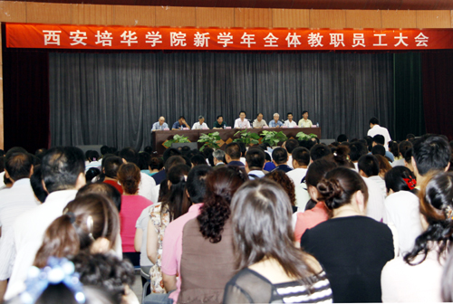 在谈到学校的办学思想、教学理念和队伍建设等方面工作时,姜院长指出,我们要进一步深化教学改革,践行理论联系实际、课堂联系课外、案例引进课堂的培养方式,形成互动活泼的教学氛围;从机制上、政策上、制度上加强学校二级院系的教学工作,全面展开教学自查;并加强学校教师队伍的人才培养工作。他强调各院系、各部门、处室要做到密切联系、相互配合,不仅要时刻保持良好的紧迫感,更要以饱满的热情投入到工作中去,推动我校各项工作又好又快地发展,把“平安,文明”校园做到实处。全校教职员工应总结成功的经验和失败的教训,冷静的面对学校各方面的发展,积极准备迎接新一轮的教学水平评估工作。姜院长强调,作为西部十二省市区首家民办本科普通高等学校、西部首家拥有学士学位授予权的民办高校,我校也将在民办院校中率先获得首家中级职称的评审权。因此,我们不仅有责任、而且有义务全身心的投入到民办教育事业当中,实现陕西民办教育的二次腾飞,引领民办教育持续健康的发展。