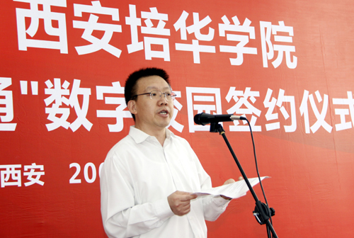 中国电信西安分公司工作人员现场讲解了“翼卡通”数字校园将给学校师生带来的便利。随后,院长姜波博士与中国电信西安分公司副总经理杨青峰先生签署合作协议。