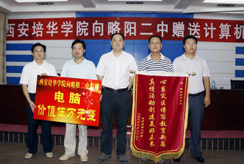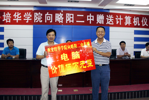 7月29日,在陕西汉中略阳县第二中学的临时会议室里,举行了我校为略阳县第二中学捐赠计算机教学设施仪式,受到了该校近两千名师生的欢迎和称赞。