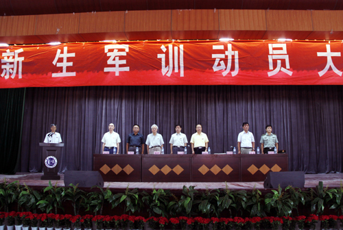 8月18日上午10时,09届第一批新生军训动员大会在我校长安校区大学生活动中心举行。党委书记王斗虎、副院长陈明华、杨定君、段茂贤、王根性,院长助理姜朗,校总会计师陆忠明等校领导及职业教育学院、各处室负责人以及军训团全体教官、指导员和我校第一批参训学生出席了大会。
