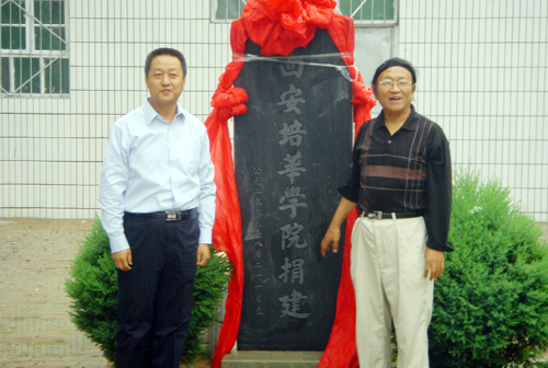 8月21日,在革命老区陕北子洲县的准宁湾乡杜家湾中学翻修一新的校园里,子洲县副县长安锁堂与我校办公室主任宋伟一起,在热烈的掌声和清脆的鞭炮声中,为竖立在该校校园中题写着“西安培华学院捐建”的石碑进行了剪彩。这标志着由我校出资20万元,为杜家湾中学实施的翻新整修“希望爱心工程”,在新学年到来之时顺利竣工。